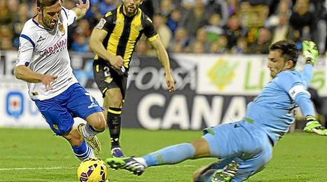 el meta bético acertó el regate del zaragocista y le sacó el balón con la